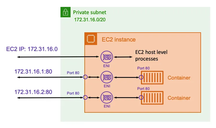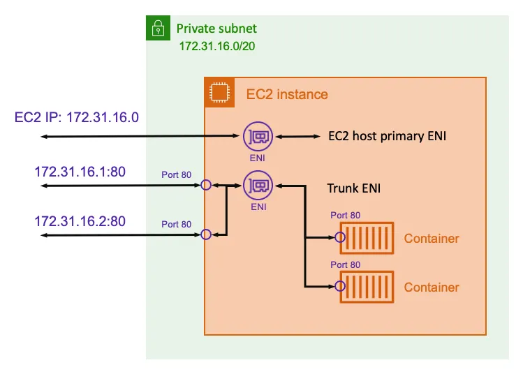 단일 EC2 ENI가 여러 컨테이너에 의해 공유됨