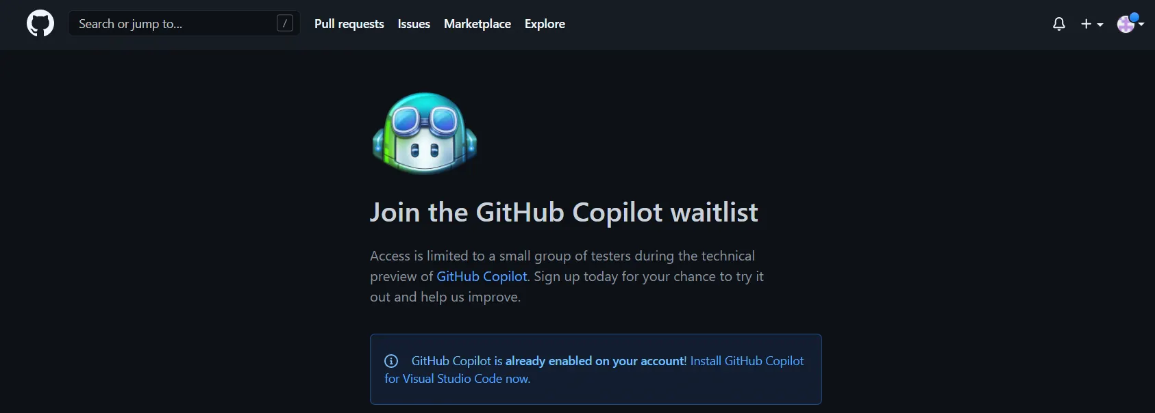 Copilot 대기열에 GitHub 계정을 등록해야한다.