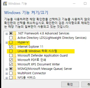 다시 WSL을 사용하려면 Hyper-V를 체크해주고 → 가상화 기반 보안을 사용함으로 변경해준 후 재부팅 하면 된다.