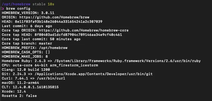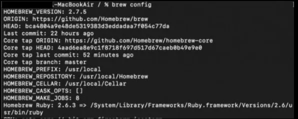 brew config로 재확인