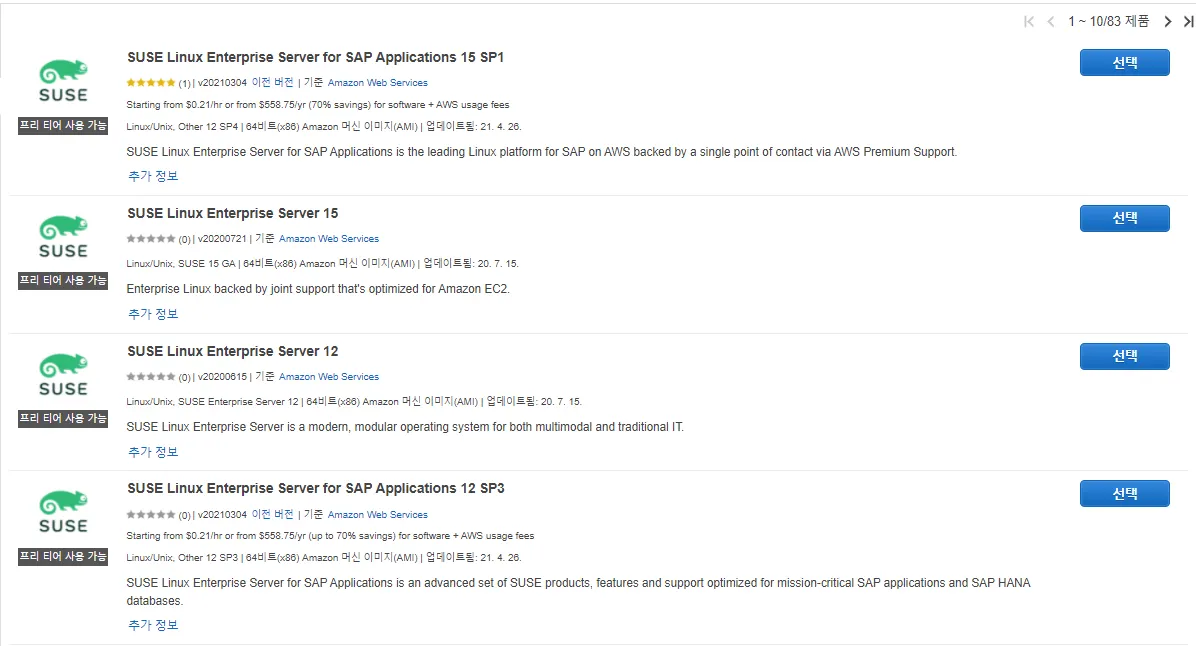 또한 일반적으로 콘솔의 AMI 선택창에서 AMI ID도 정보에 같이 제공되는데 구독형 AMI는 ID를 제공하지 않았다.
