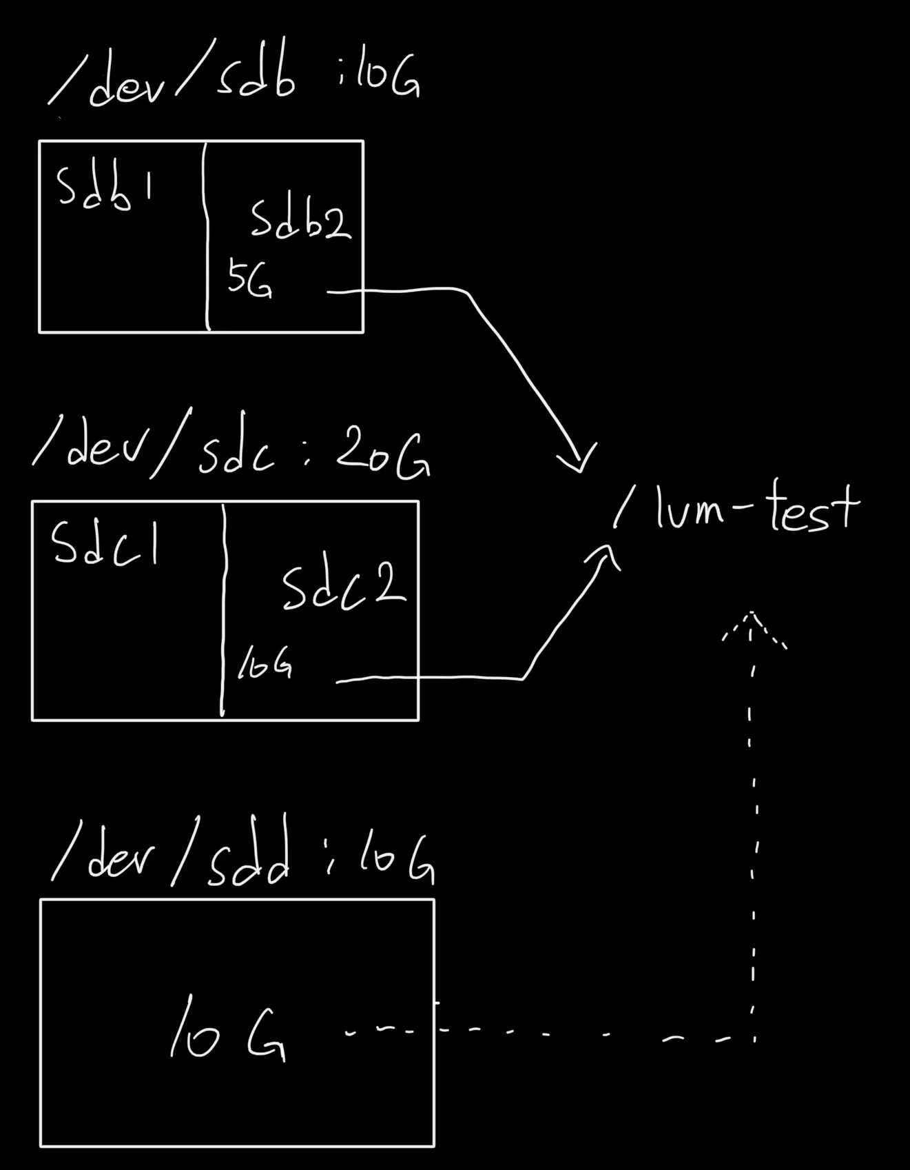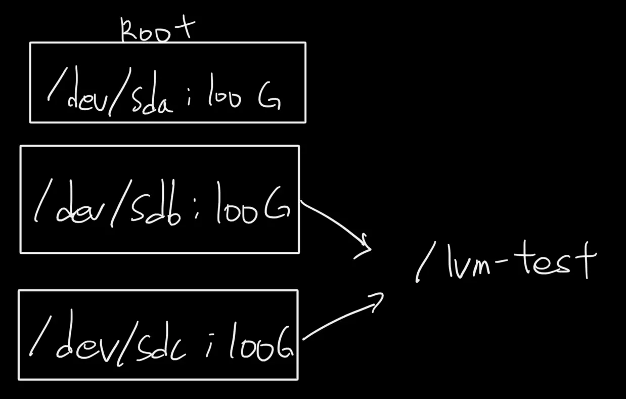 sdb2, sdc2 가 마운트되어 15G인 /lvm-test 에 /dev/sdd를 추가로 마운트하여 25G인 /lvm-test로 운영할 수 있다.