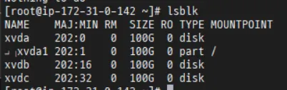 lsblk 명령어로 100GB 볼륨 3개를 확인한다.