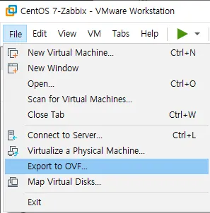 VMware Workstation → File → Export to OVF → (.ova 파일로 저장, ovf 아님!)