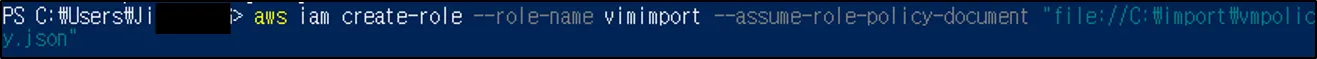 aws iam create-role --role-name vmimport --assume-role-policy-document "file://C:\import\vmpolicy.json"