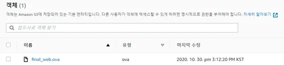 cloudestmigration 이라는 S3 버킷을 생성한 후에 해당 ova파일을 업로드했다.