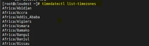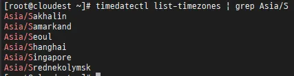 timedatectl list-timezones 명령어로 해당 서버가 사용 가능한 Timezone을 확인할 수 있다.