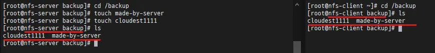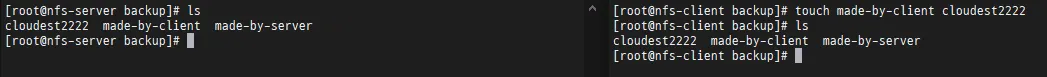 NFS Server에서 생성한 파일이 NFS Client에서 확인되는지 확인