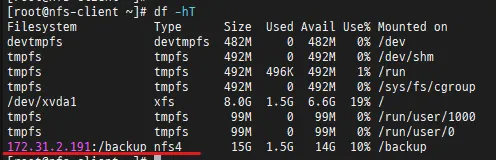 echo "172.31.2.191:/backup /backup nfs defaults 0 0">>/etc/fstab