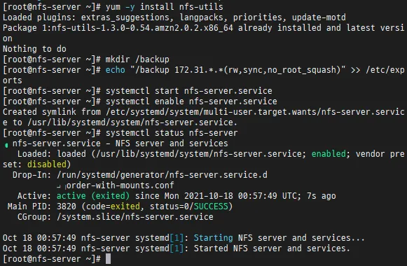 echo "/backup 172.31.13.17(rw,sync,no_root_squash)" >> /etc/exports #172.31 대역의 접근 허용