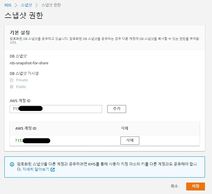 4. Default KMS로 생성되는 RDS 스냅샷은 외부공유 불가능
