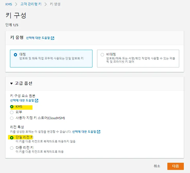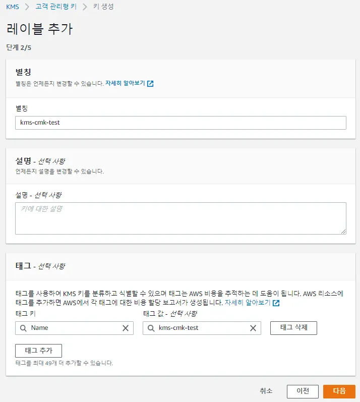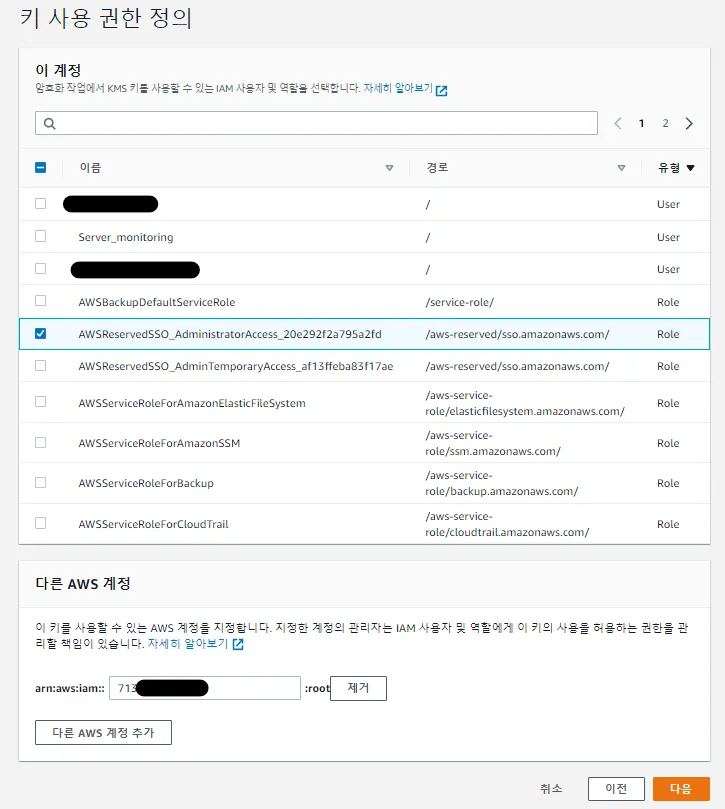 AWS KMS 키는 A 계정에서 생성한 KMS 키의 ARN을 입력한다.