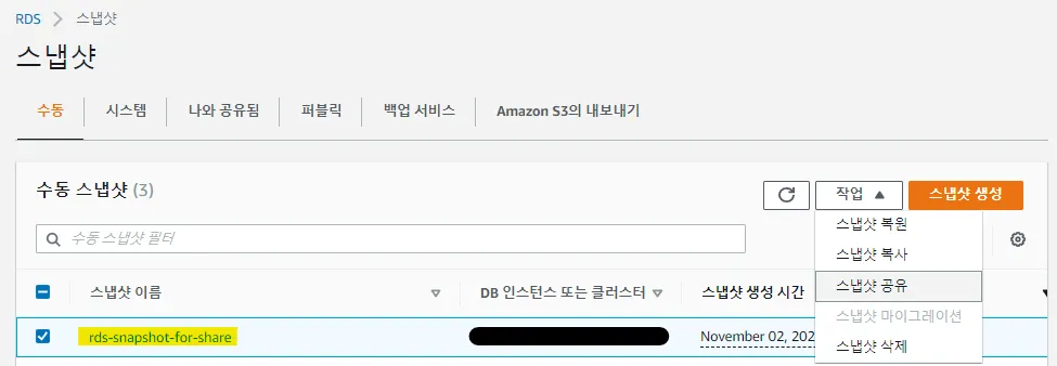 1. RDS 자동 스냅샷은 바로 공유할 수 없음